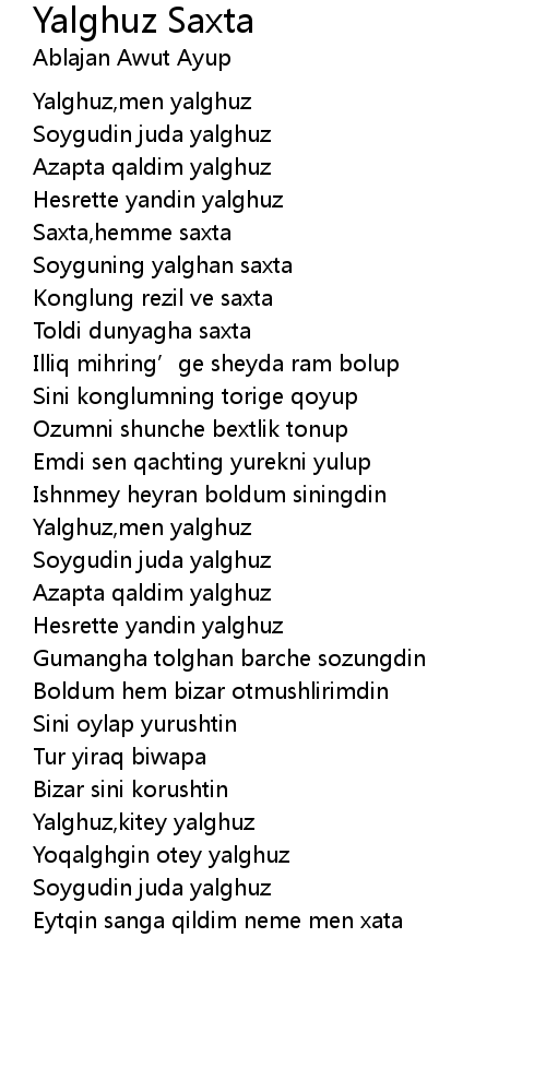 | [02:57.63] | Yoqalghgin otey yalghuz |