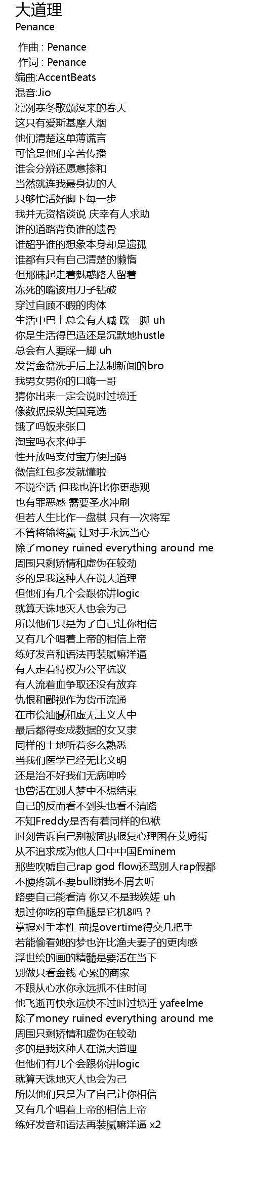 | [02:36.480] | duō de shì wǒ zhè zhǒng rén zài shuō dà dào lǐ |