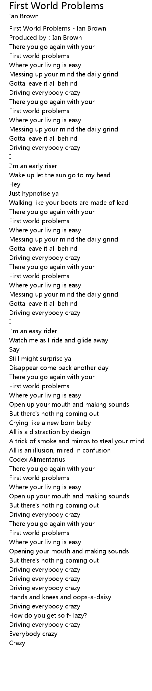 | [00:00.000] | First World Problems - Ian Brown |