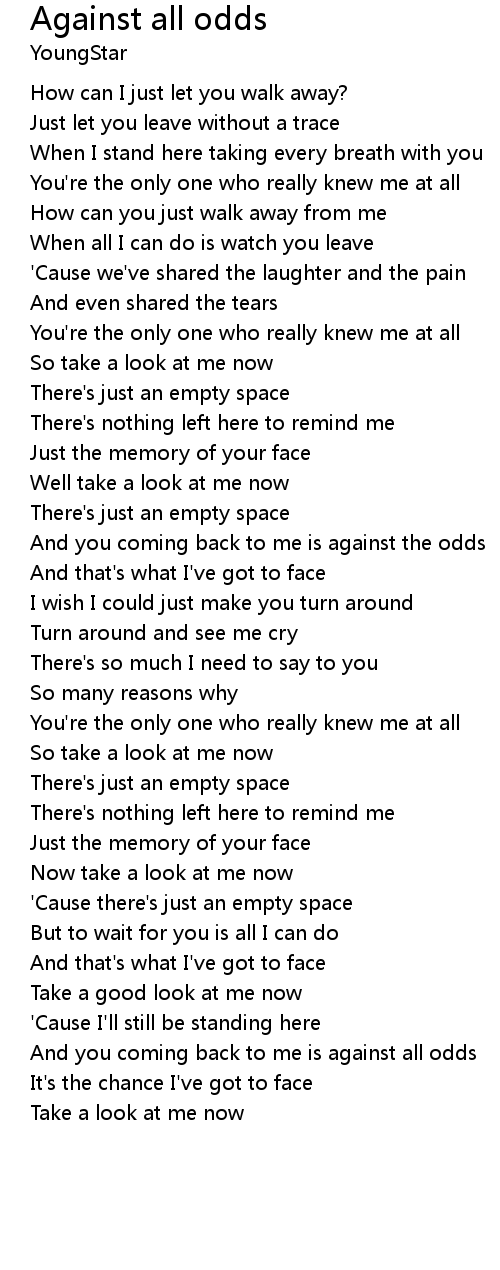 And you coming back to me is against the odds |