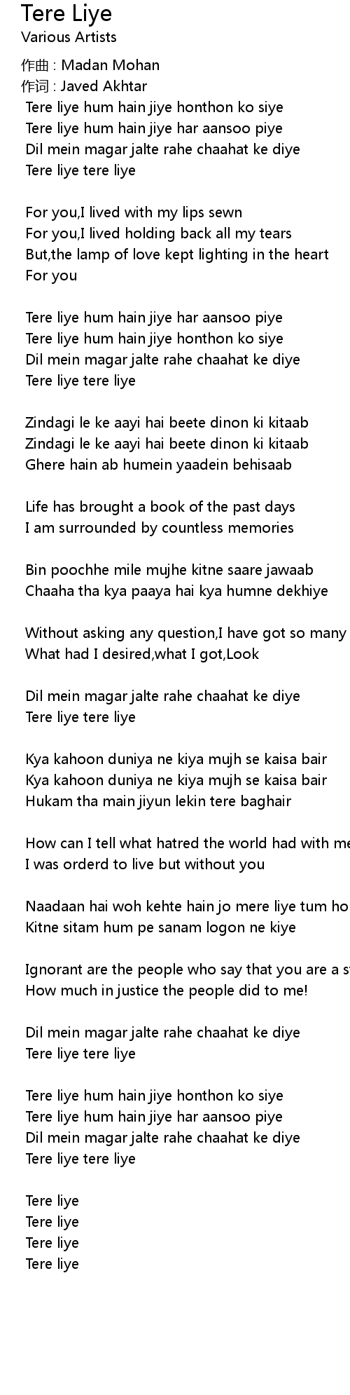 | Naadaan hai woh kehte hain jo mere liye tum ho gair | |
