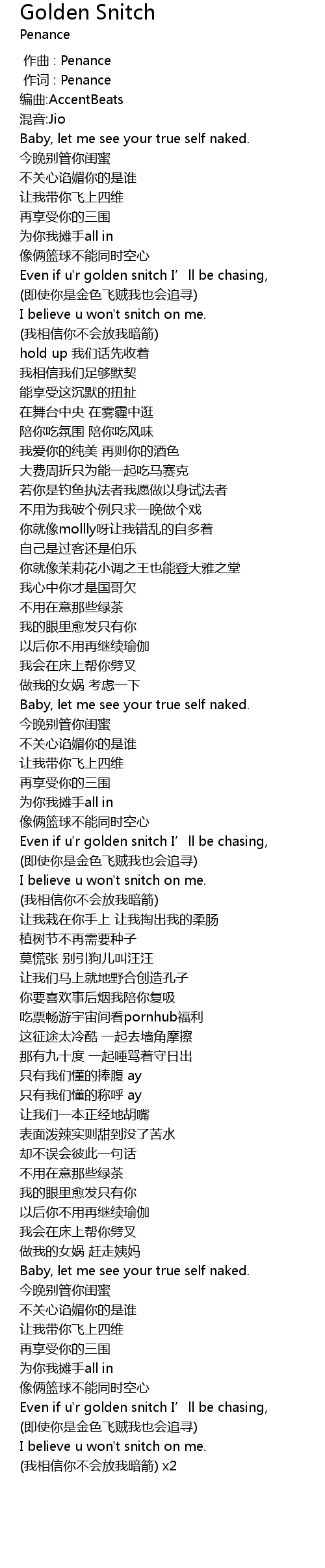 | [00:25.473] | Even if u'r golden snitch I’ll be chasing, |