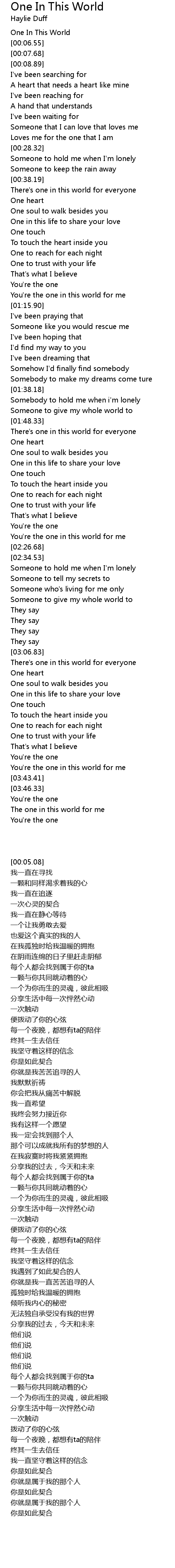 The one in this world for me |