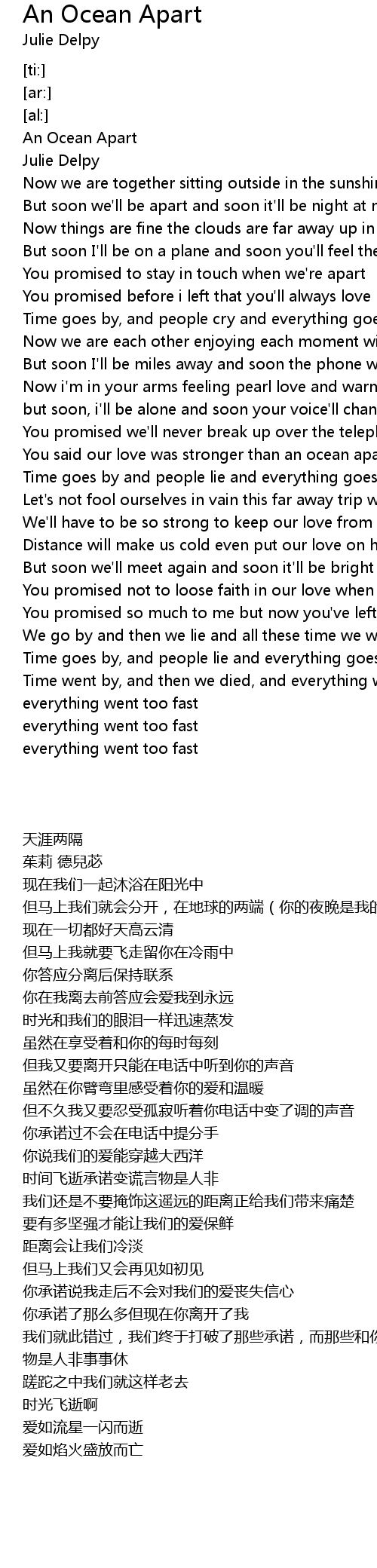 You promised to stay in touch when we're apart |