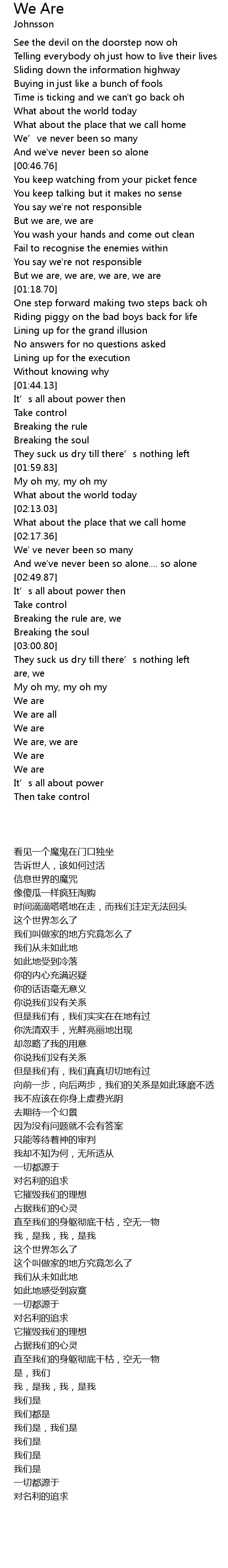 | [03:02.96] | They suck us dry till there’s nothing left |