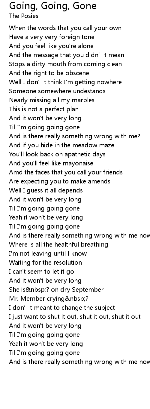 | Song | Going, Going, Gone |