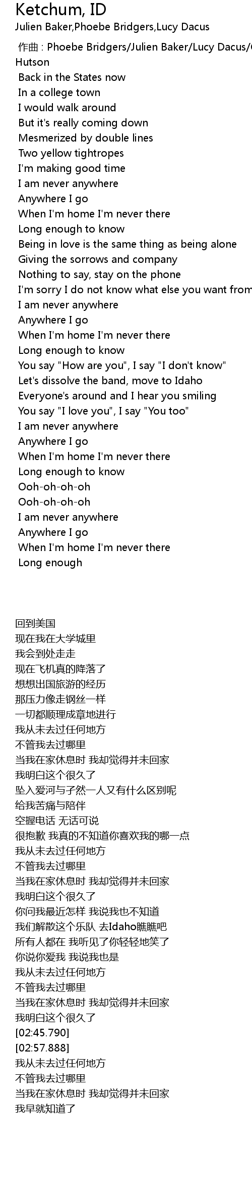 | [00:00.000] | zuo qu : Phoebe Bridgers Julien Baker Lucy Dacus Christian Lee Hutson |