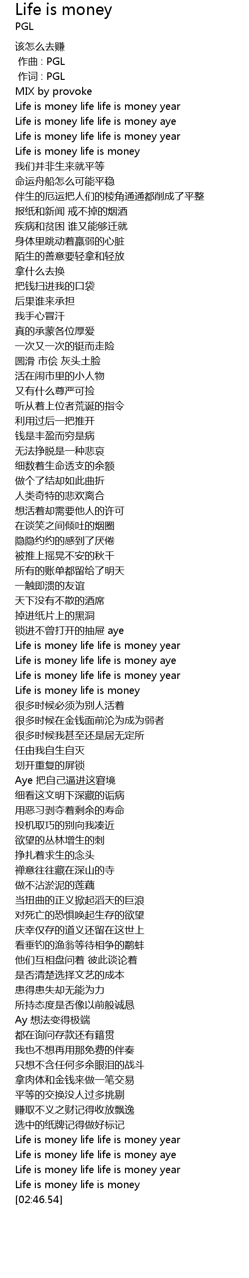 | [02:36.53] | Life is money life life is money aye |