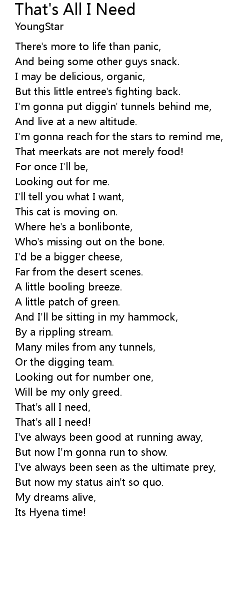 That's all I need, |