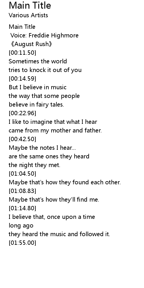 | [00:09.00] | August Rush |