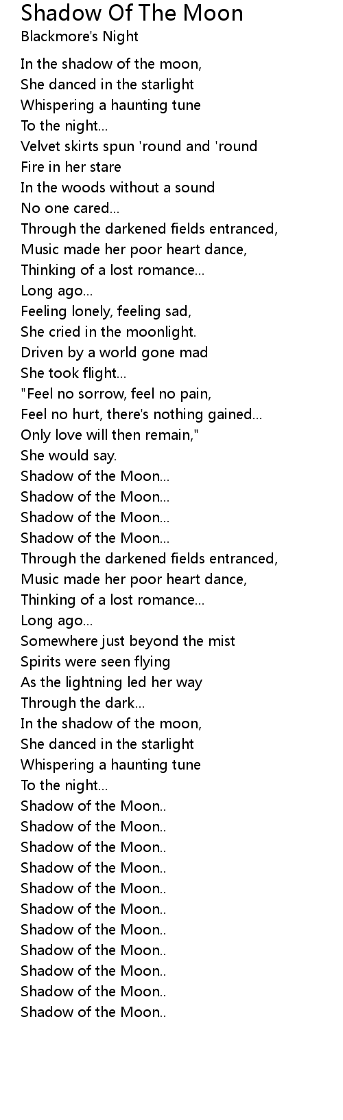 In the shadow of the moon, |