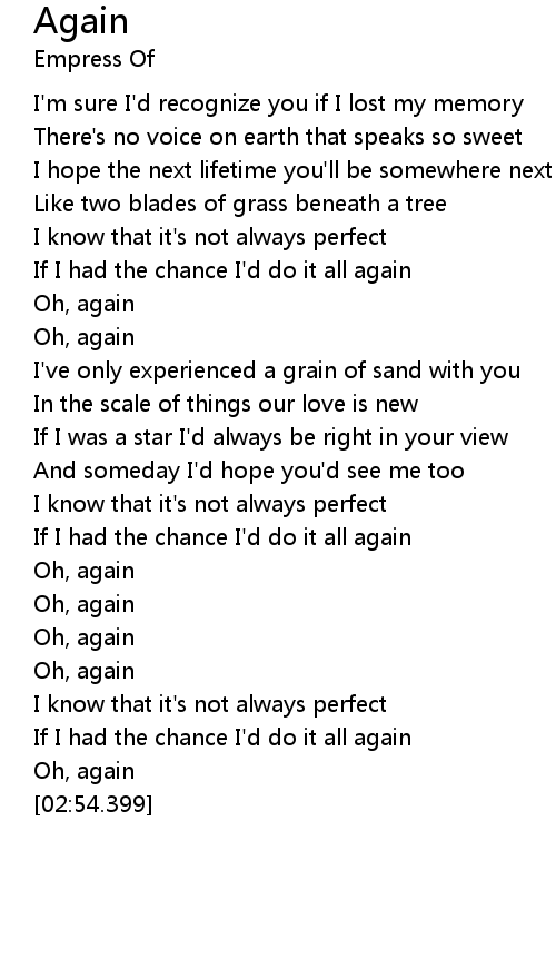 If I had the chance I'd do it all again |