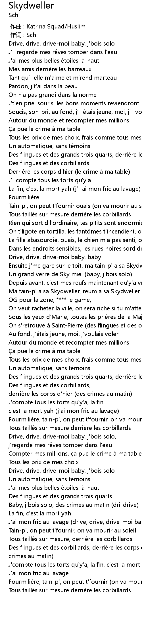 | [01:37.59] | Ensuite j'me gare sur le toit, ma tain-p' a sa Skydweller |