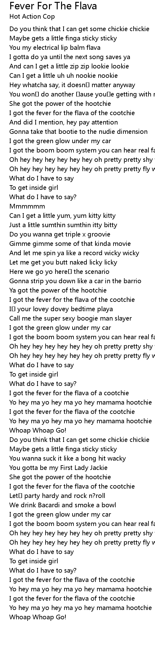| [00:37.13] | I got the fever for the flava of the cootchie |
