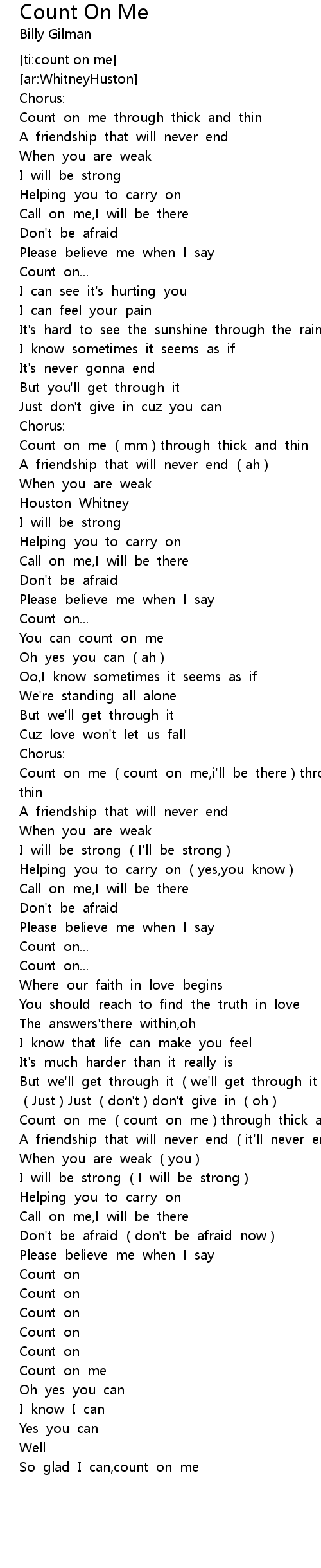 | [01:10.202] | Count on me (mm)through thick and thin |