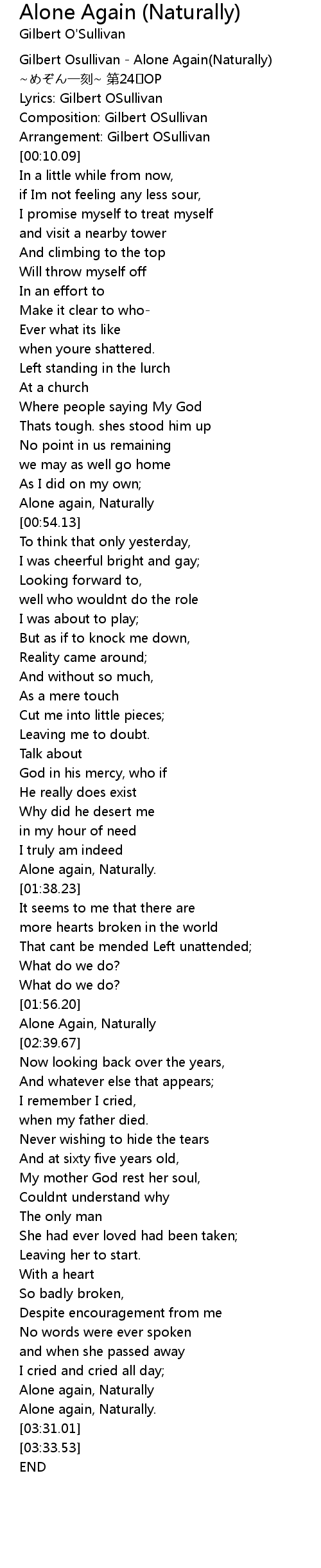 | [02:35.91] | Alone Again, Naturally |