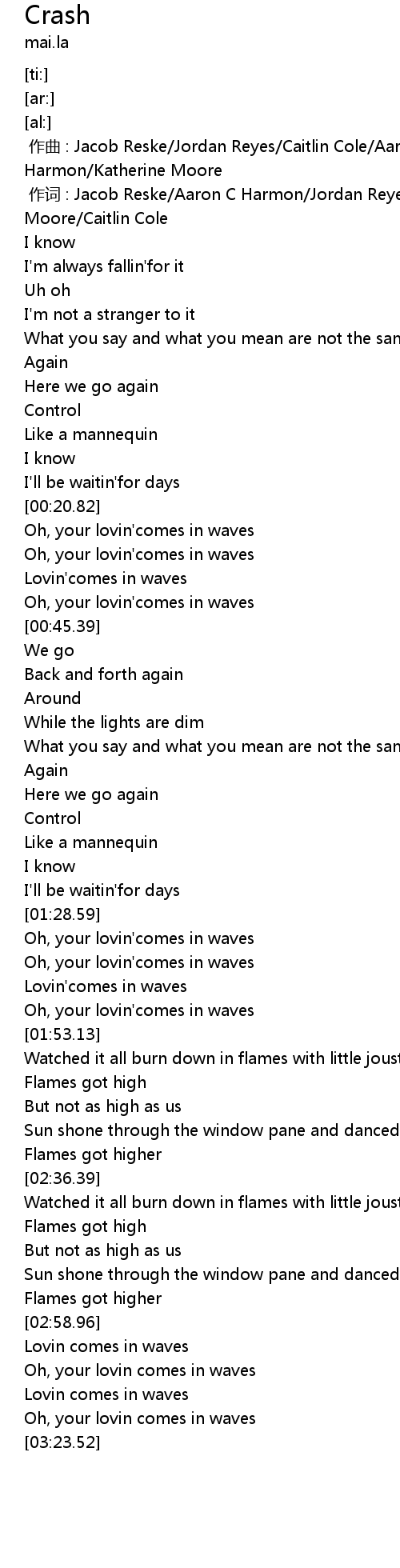 | [00:00.000] | 作词 : Jacob Reske/Aaron C Harmon/Jordan Reyes/Katherine Moore/Caitlin Cole |