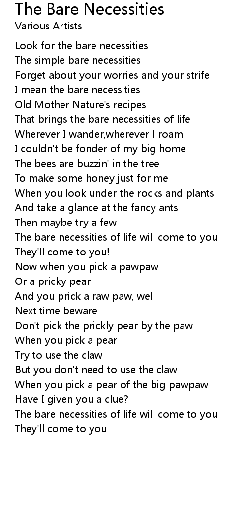 The bare necessities of life will come to you |