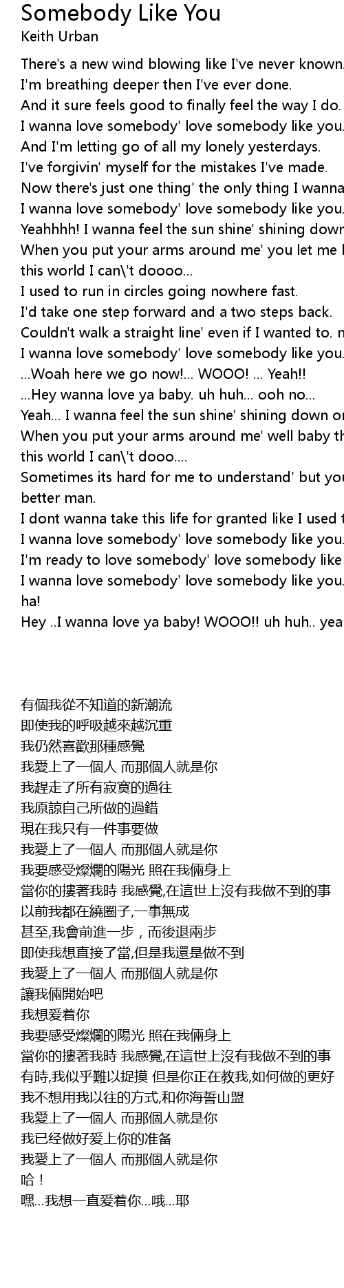 I wanna love somebody' love somebody like you... yeah. |