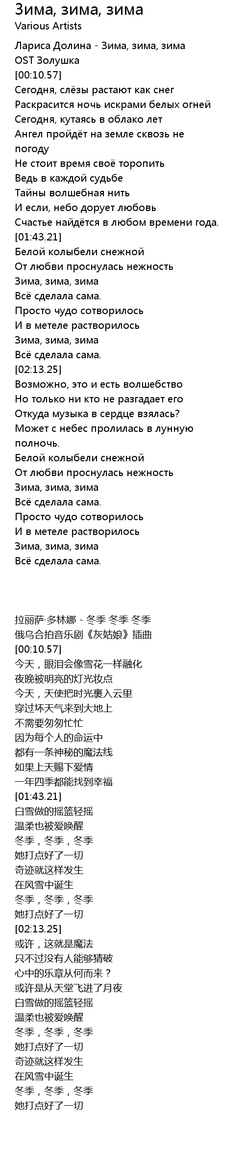 [00:00.00] Лариса Долина - Зима, зима, зима