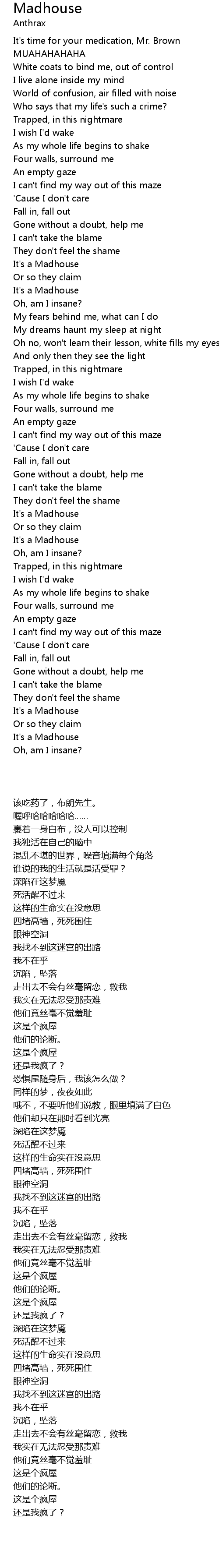 White coats to bind me, out of control |