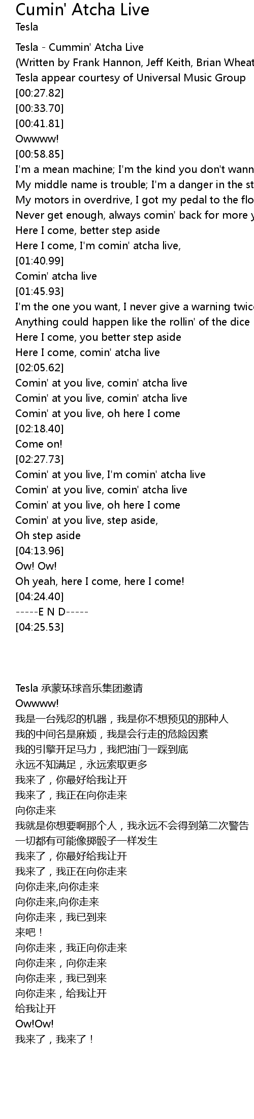 Tesla - Cummin' Atcha Live |