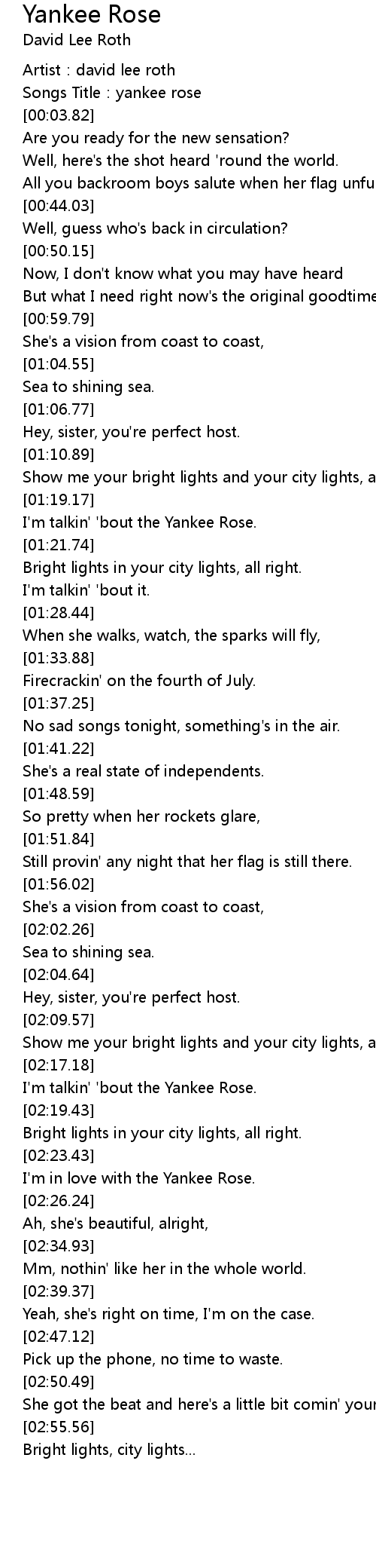 | [02:17.87] | I' m talkin' ' bout the Yankee Rose. |