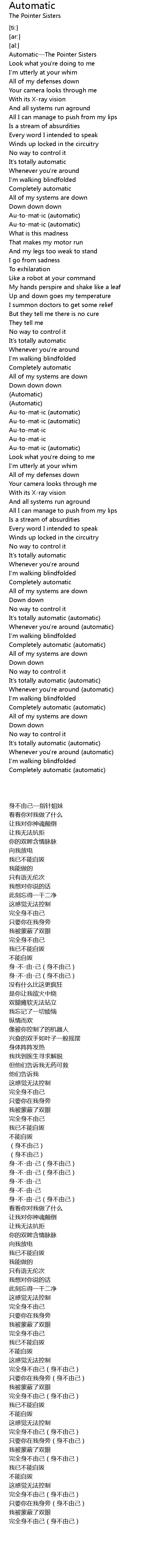 | [00:20.73] | Automatic The Pointer Sisters |
