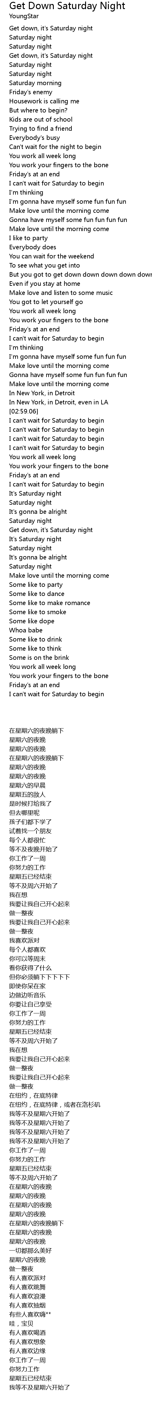 Get down, it's Saturday night |