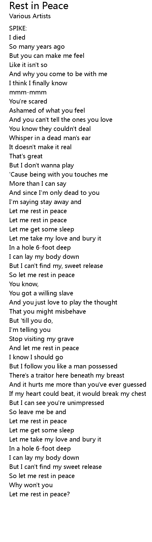 So let me rest in peace |