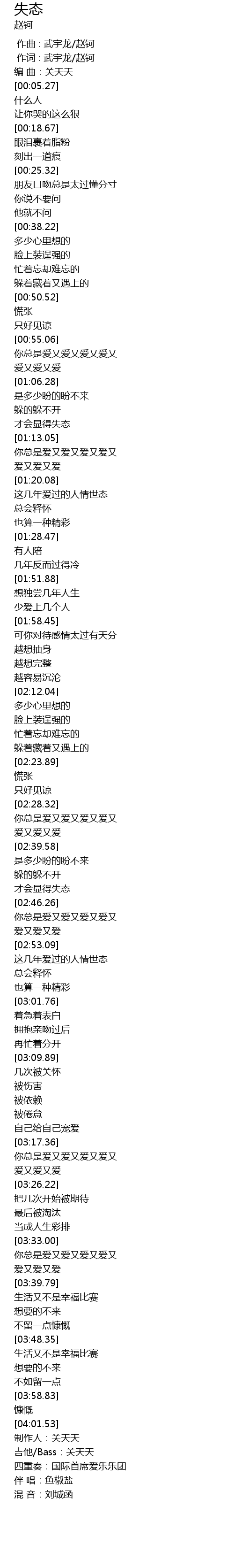| [00:02.53] | 编 曲:关天天 |