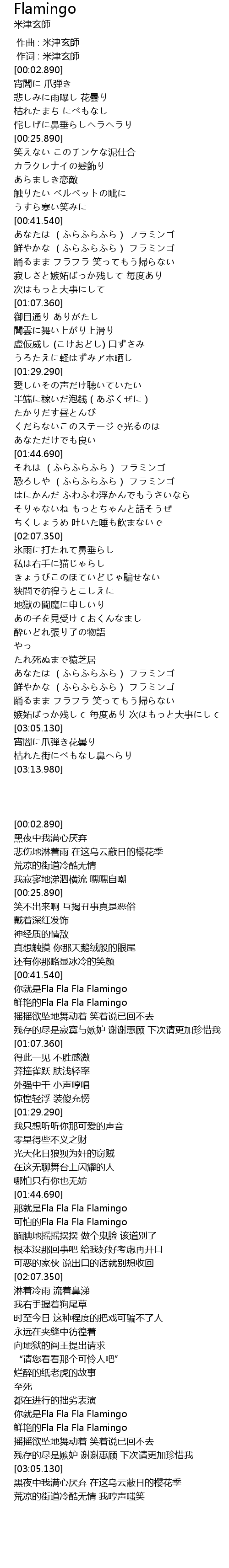 | [02:47.490] | 鮮やかな (ふらふらふら) フラミンゴ |