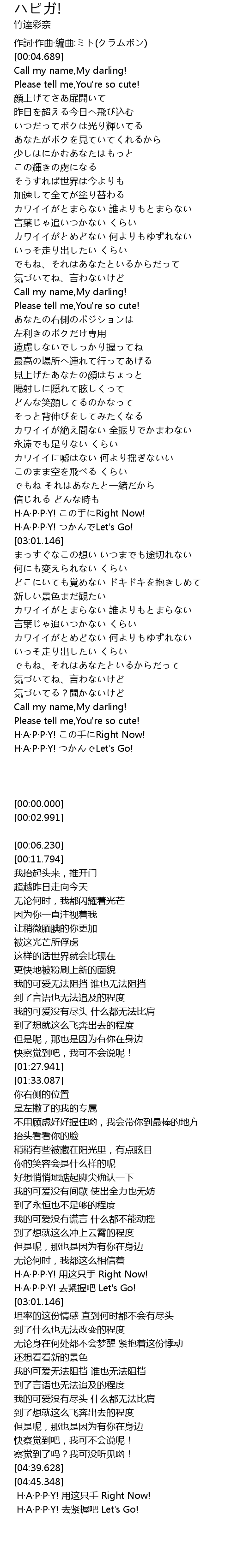 | [02:57.698] | H·A·P·P·Y! つかんでLet's Go! |