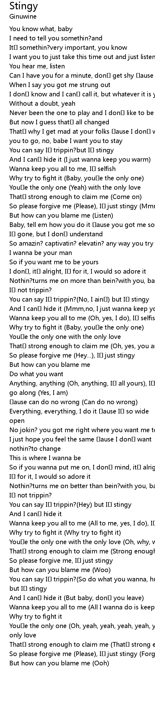 | So please forgive me (Please), I just stingy (Forgive me, baby) | |