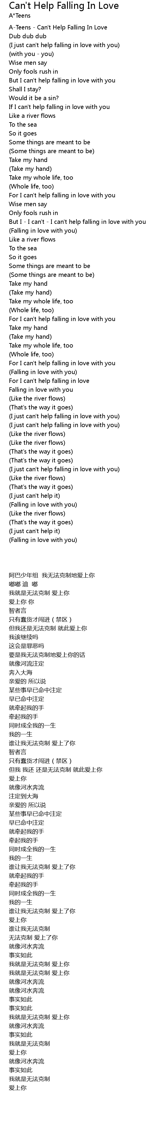 A-Teens - Can't Help Falling In Love |