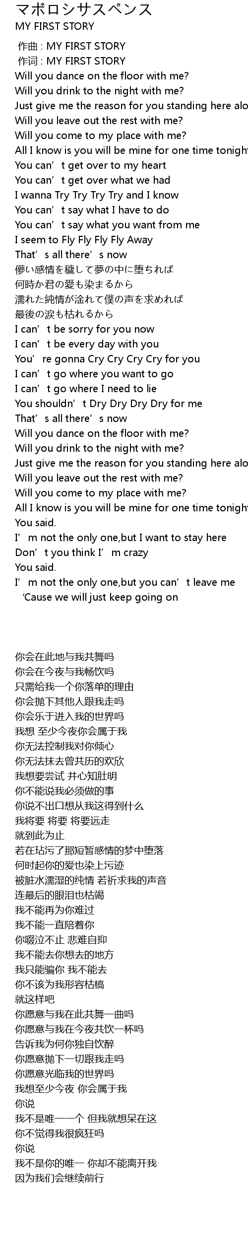 | [00:00.000] | zuò qǔ : MY FIRST STORY |