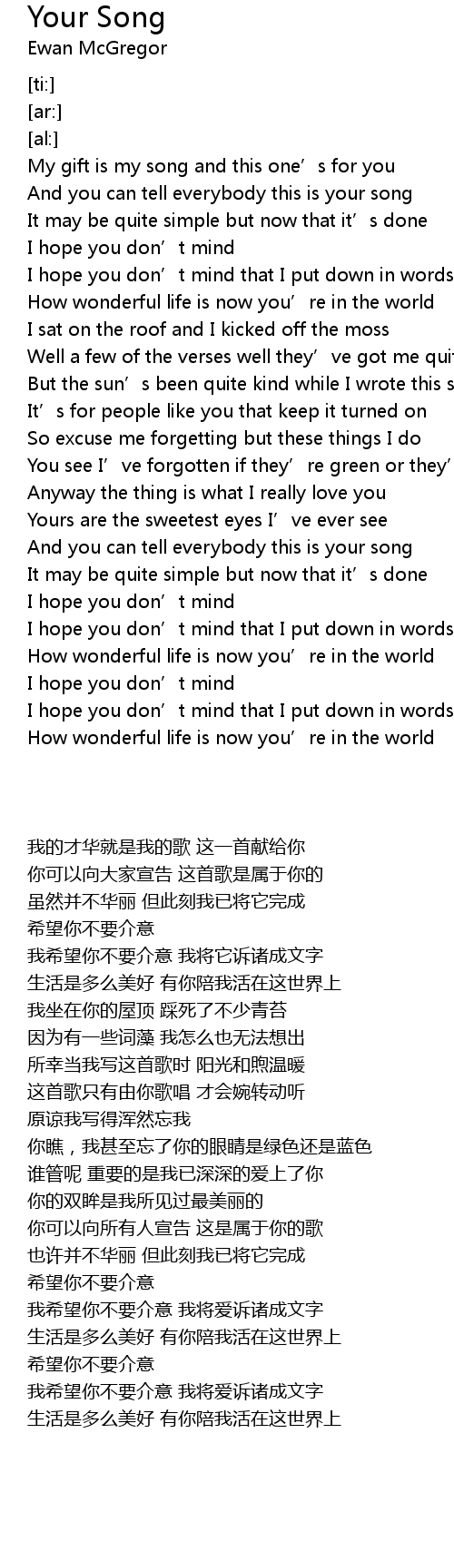| [02:45.99] | How wonderful life is now you’re in the world |