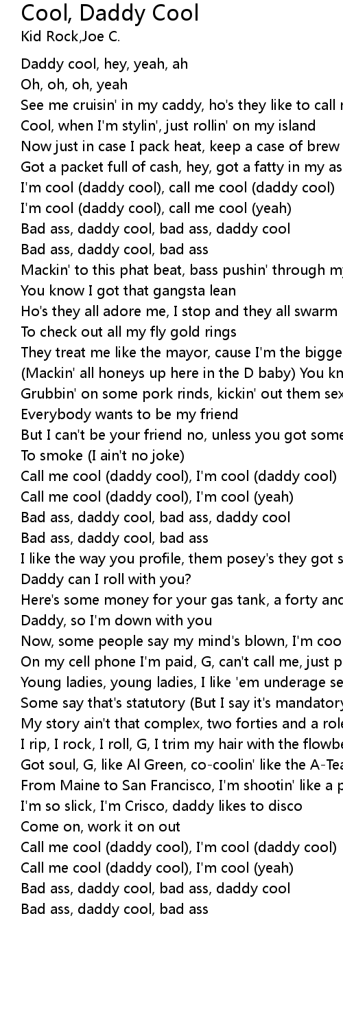 | [00:35.190] | I'm cool (daddy cool), call me cool (daddy cool) |