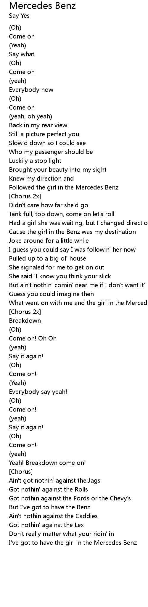 I've got to have the girl in the Mercedes Benz |