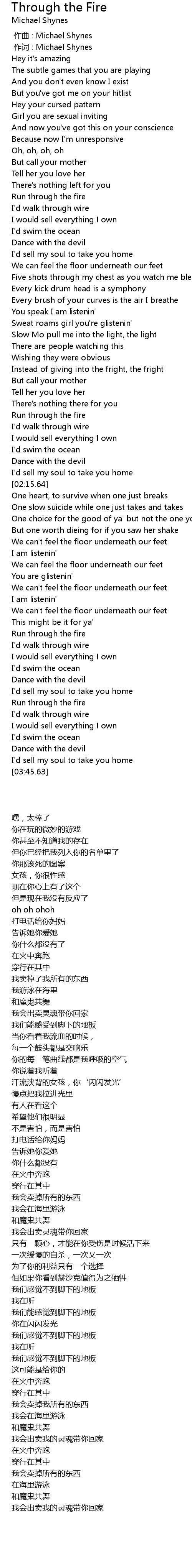 | [00:01.000] | zuò cí : Michael Shynes |