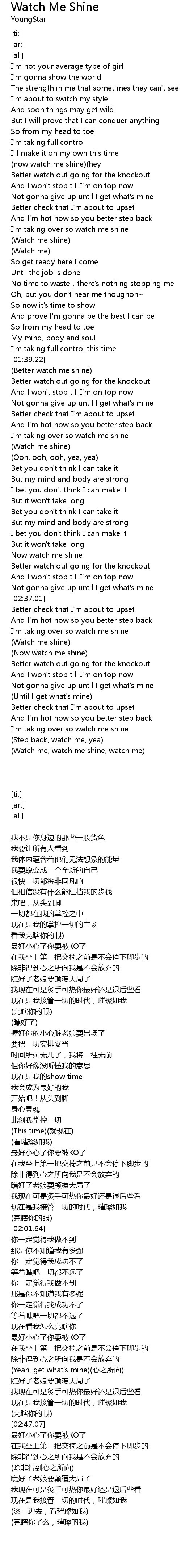 | [01:40.39] | (Better watch me shine) |