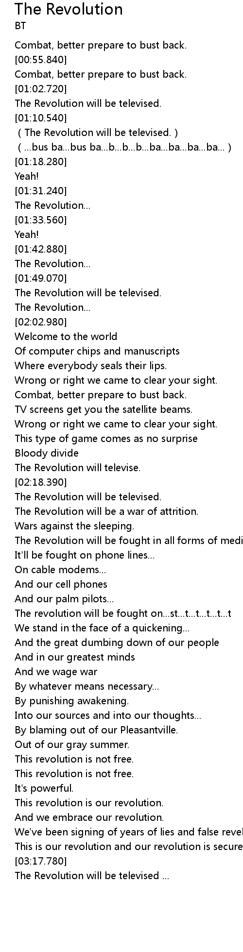 | [03:33.090] | The Revolution will be televised ... |