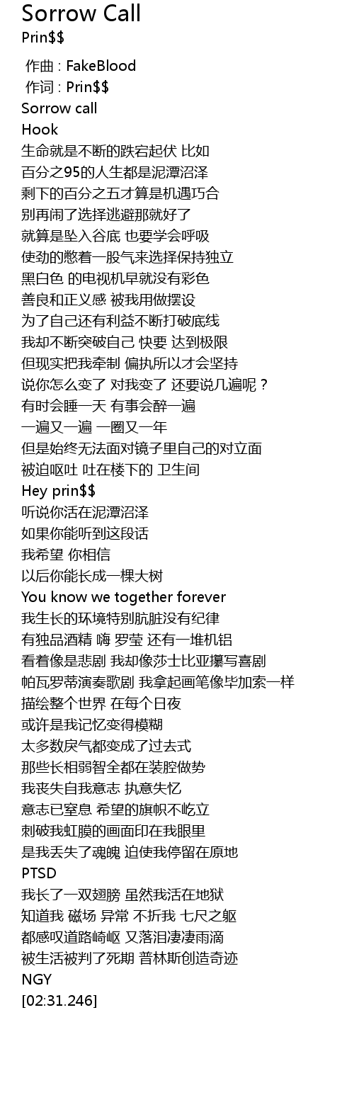 | [00:01.000] | 作词 : Prin$$ |