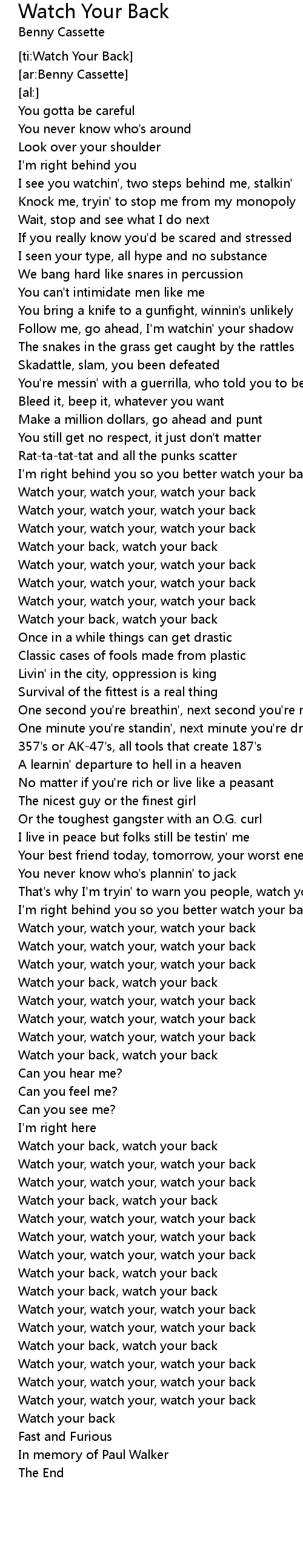 Watch your back, watch your back |