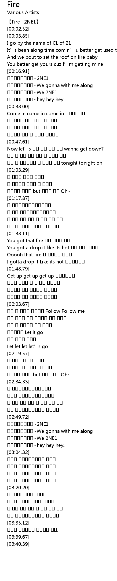 | [00:00.57] | 【Fire--2NE1】 |