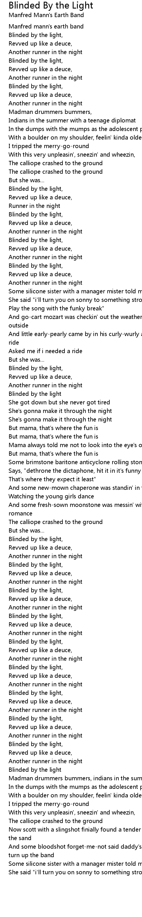 Blinded by the light, |
