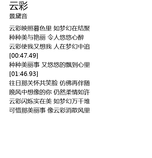 | [00:38.37] | 云彩使我又想我 人在梦幻中追 |