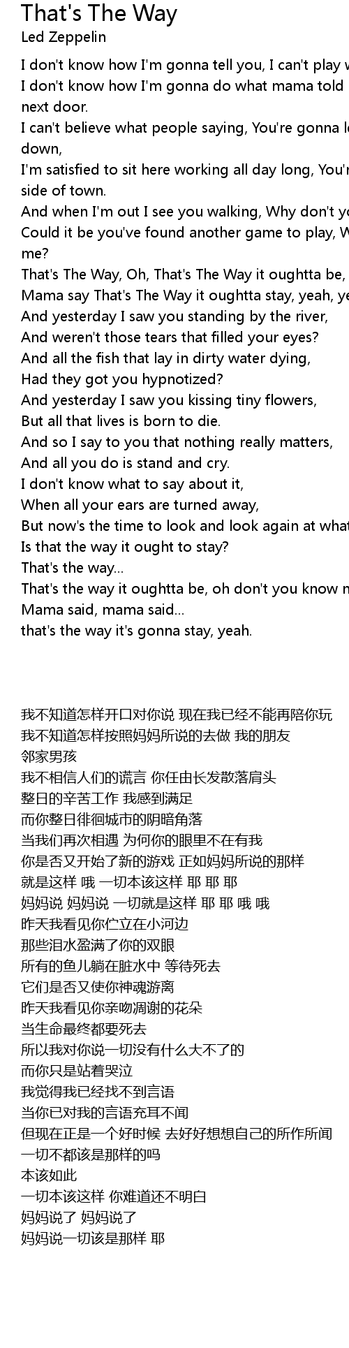 That's The Way, Oh, That's The Way it oughtta be, yeah, yeah, |