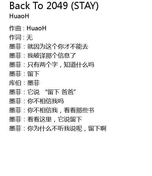 | Song | Back To 2049 (STAY) |