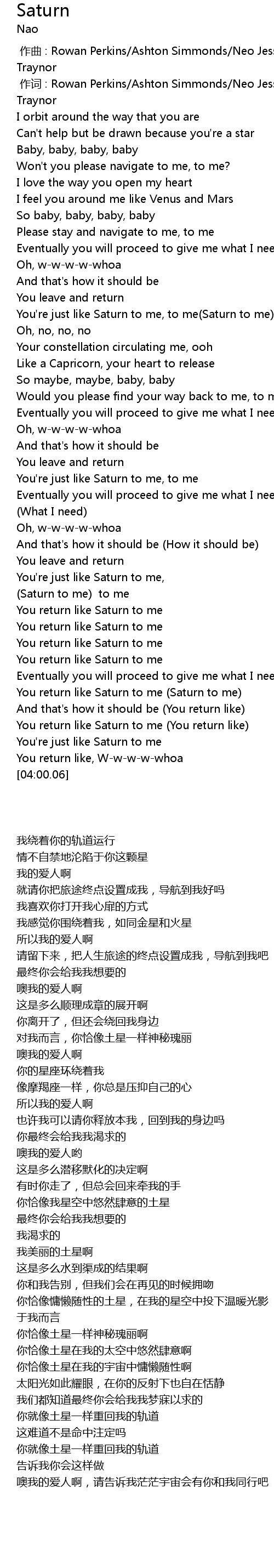 | [03:38.66] | You return like Saturn to me Saturn to me |